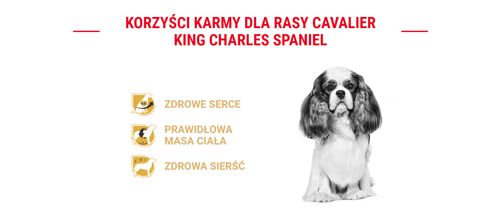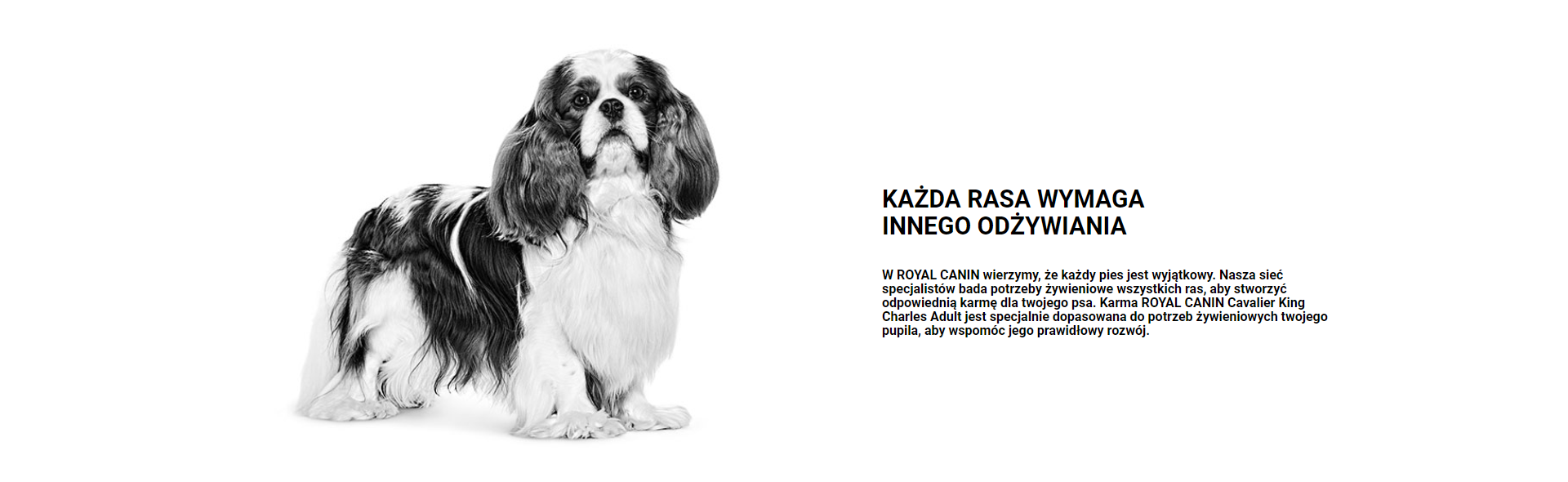 Karma ROYAL CANIN® Cavalier King Charles Adult została opracowana specjalnie dla dorosłych psów, powyżej 10 miesiąca życia, rasy cavalier king charles spaniel.