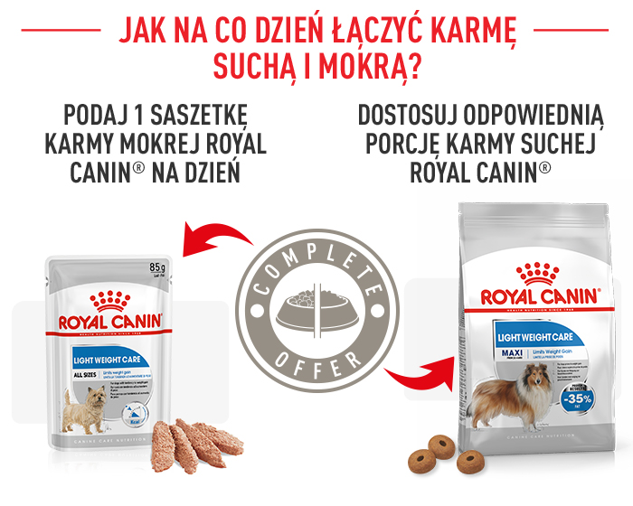 Program żywienia Light Weight Care obejmuje dwa produkty. Zarówno chrupiące krokiety, jak i delikatny pasztet są optymalnie zbilansowane i kompletne, stanowiąc wspaniałe zestawienie. Podaj psu delikatny pasztet w połączeniu ze smakowitymi krokietami!