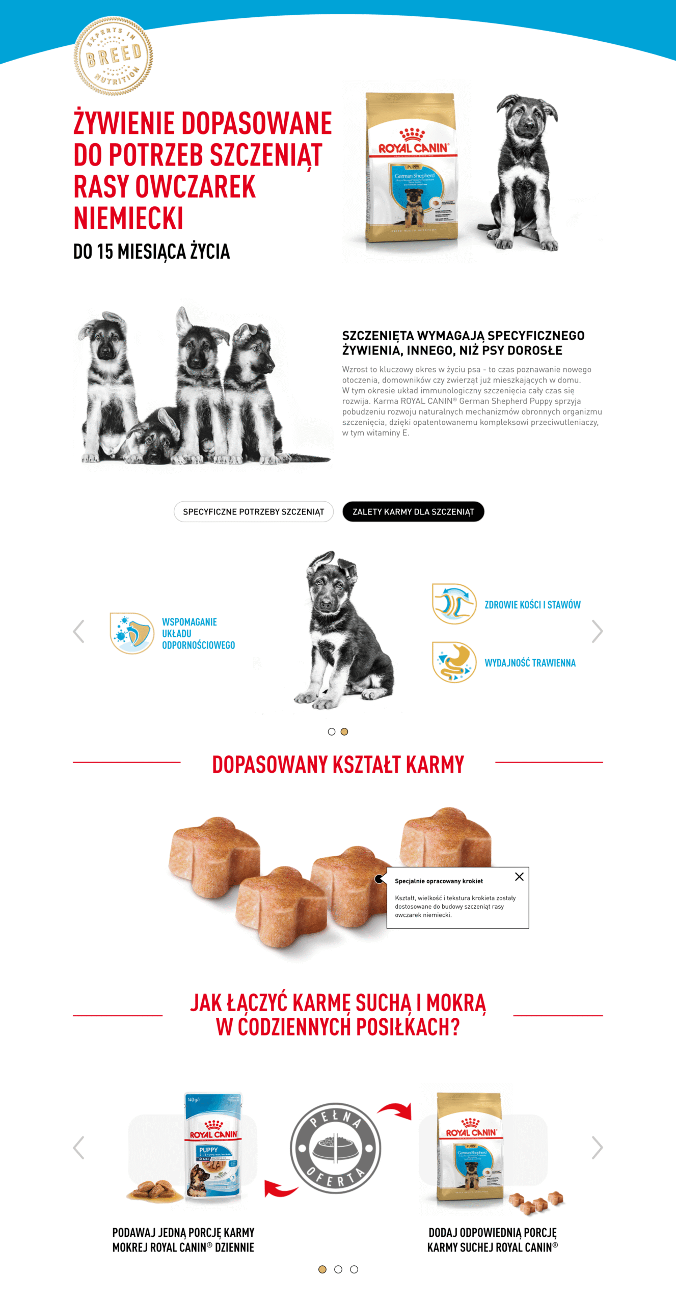 Karma ROYAL CANIN® German Shepherd Puppy została opracowana specjalnie dla szczeniąt rasy owczarek niemiecki, do 15 miesiąca życia.