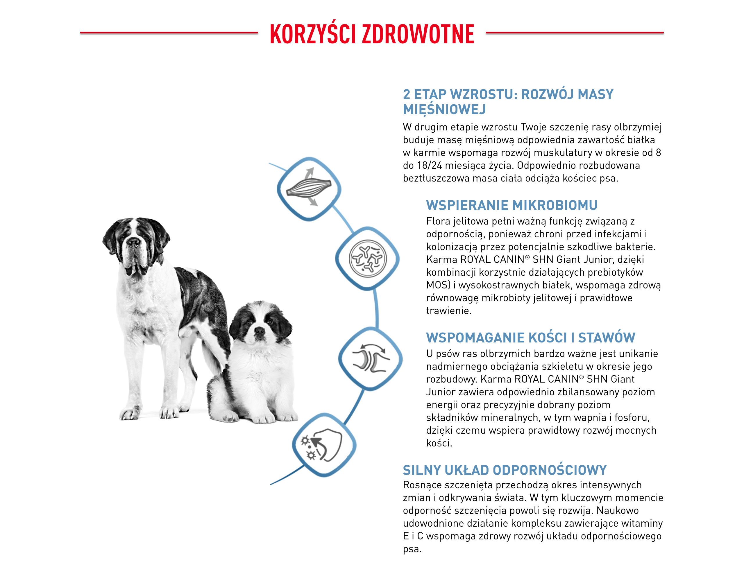 Karma ROYAL CANIN® Giant Junior zawiera optymalny poziom białka, co wspomaga rozwój masy mięśniowej psa w wieku od 8 do 18/24 miesiąca życia.