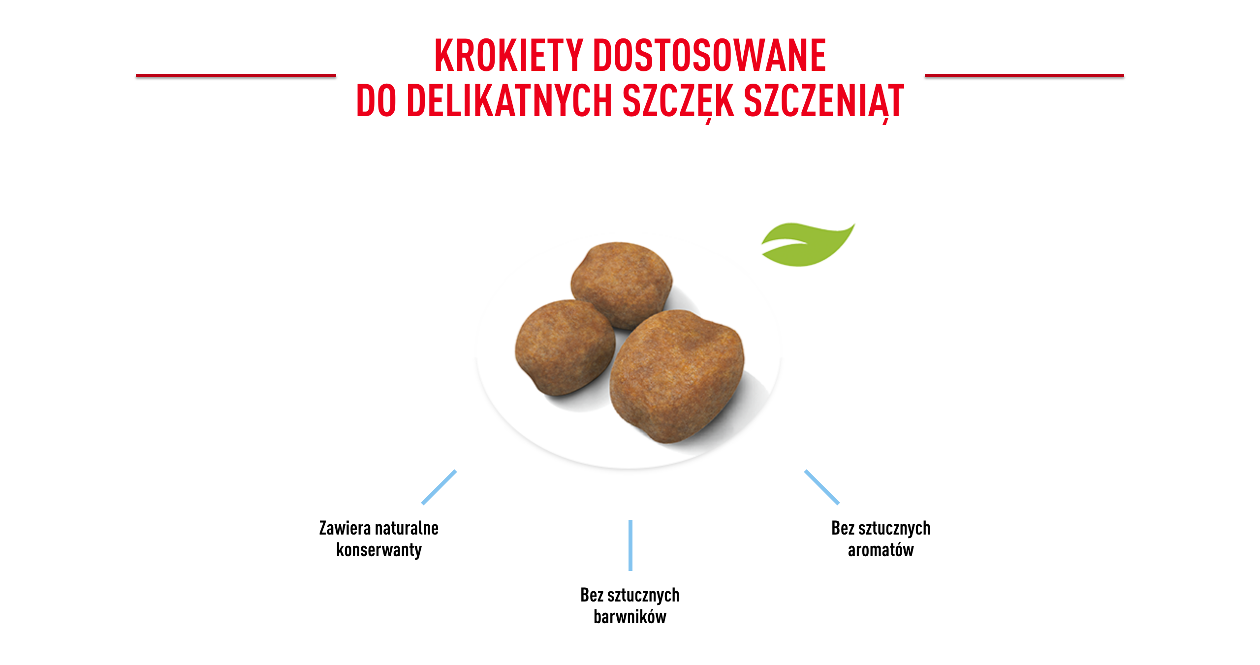 Krokiety ROYAL CANIN® Giant Puppy zostały specjalnie dostosowane do rozmiaru szczęk szczeniąt ras olbrzymich, ułatwiając chwytanie i rozgryzanie karmy