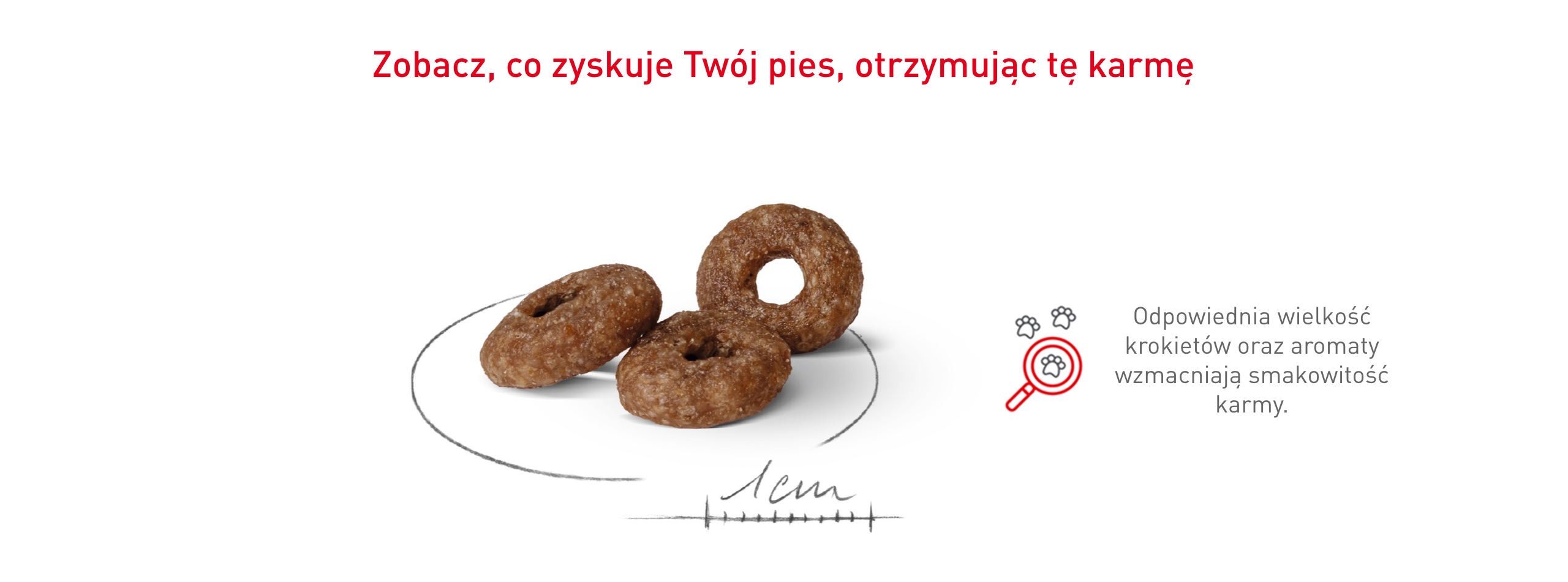 Karma nie tylko jest wzbogacona w wyjątkowe aromaty, które pobudzają apetyt, ale również krokiet został dostosowany do delikatnych szczęk psów ras małych. Dzięki nawet najbardziej wybredne psy otrzymują wszystkie niezbędne składniki pokarmowe.