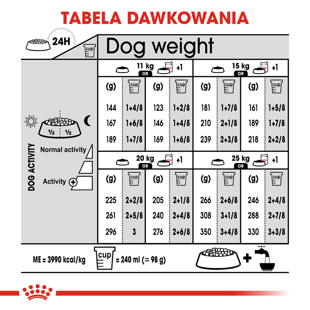 Karma ROYAL CANIN® Digestive Care Medium jest odpowiednia dla psów o wrażliwym przewodzie pokarmowym, których masa ciała wynosi między 11 a 25 kg.